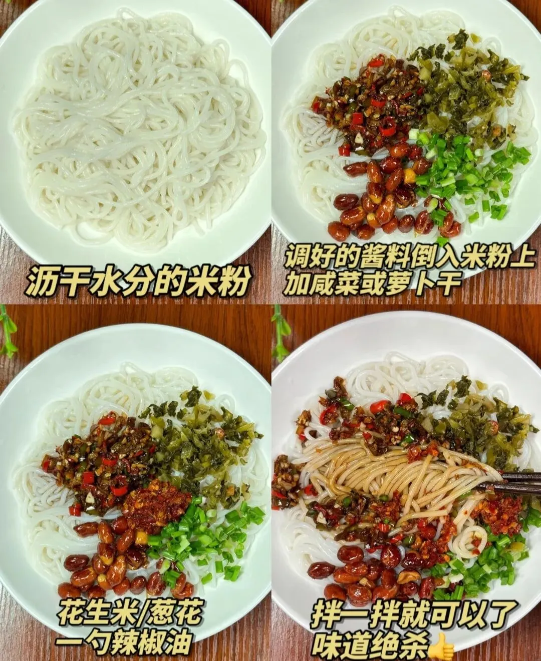 拌粉:爽滑劲道的米粉,配上开胃的辣椒和萝卜干,能瞬间打开味蕾,让人在闷热天气里也能吃得下饭。