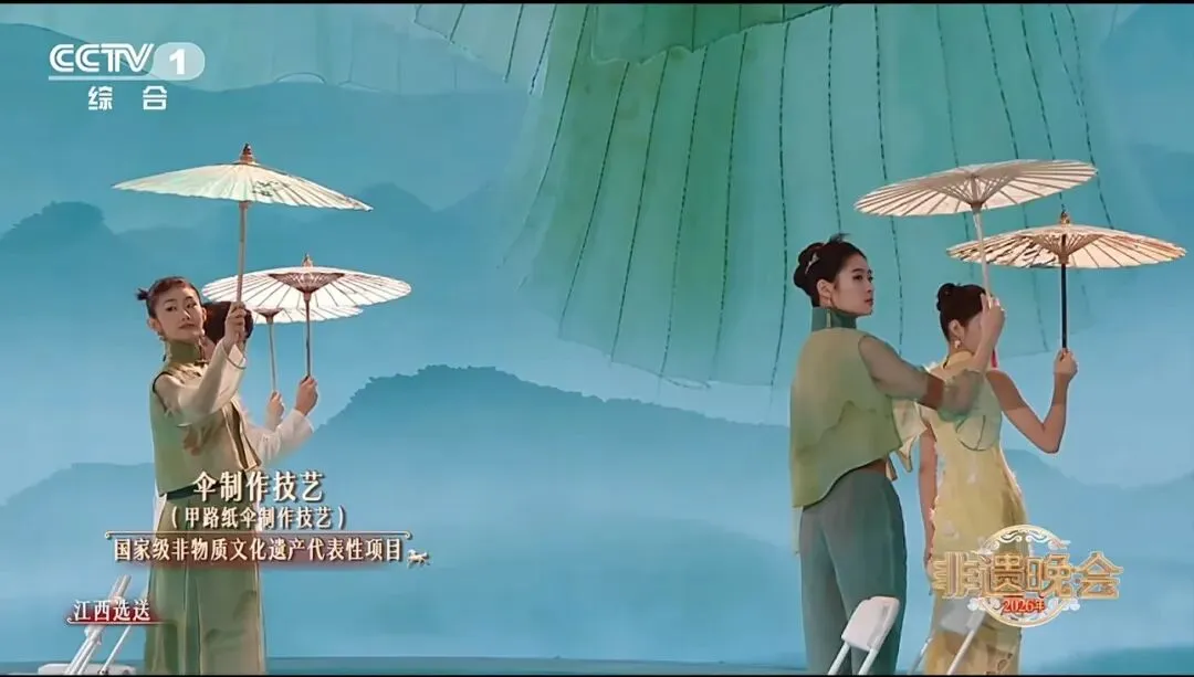 南昌清音、夏布织造技艺、甲路纸伞制作技艺3个国家级非遗代表性项目亮相2026年非遗晚会。流光溢彩,尽显东方美学韵致。