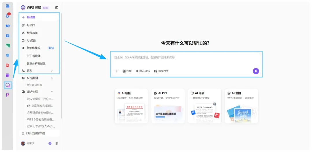 入口:首页左侧菜单栏点击灵犀图标。