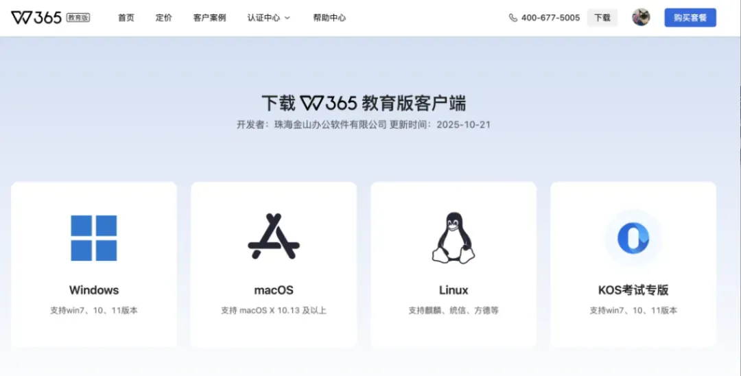 电脑端:请前往WPS 365官方网站下载最新版本:https://365.wps.cn/edu/download,点击“下载教育版客户端”(可下载整合版,体验完整的应用功能)。