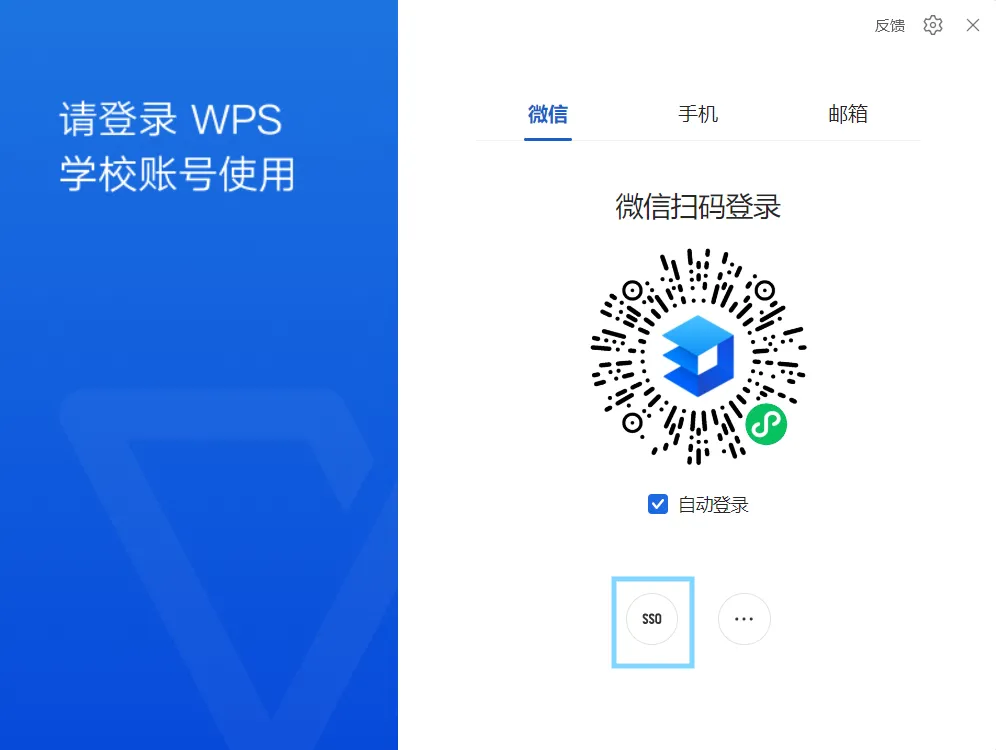 打开WPS Office教育版软件首页,点击右上角【立即登录】选择【SSO】登录。