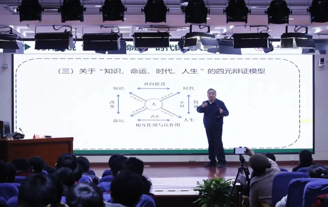 本次授课是一场面向高中生的思想动员课,蔡安季校友从四个关键词切入——“知识”“命运”“时代”“人生”,阐释它们之间的深层联系,并激励学生把握当下、面向未来。知识具有能动性与辩证性,不仅能提升自我,更可能改变个人、家庭乃至国家的命运轨迹;而时代铸就人生,我们生活在充满机遇与挑战的时代,时代塑造我们,我们也能影响时代。二者相互成就,互为因果。