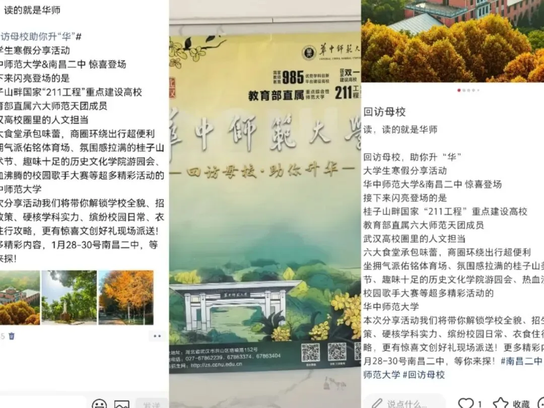 回访母校,助你升“华”!第十六届寒假分享活动正在火热进行中。“寒分er”们从华师出发,奔赴五湖四海,回到高中母校,介绍华师、分享经历;搭建桥梁、点亮梦想!今天就跟随小招一起走进南昌市第二中学,看看他们的精彩宣讲吧~