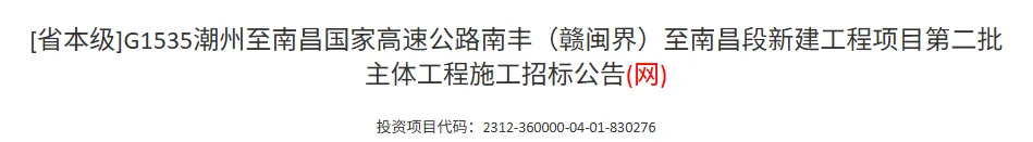 >【53亿】江西南丰至南昌高速公路土建工程中标