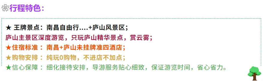 用餐:早晚餐 住宿:庐山