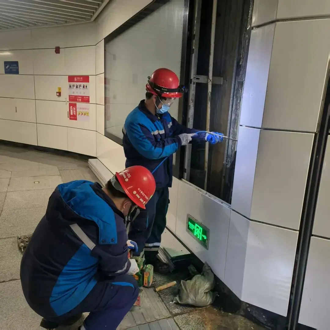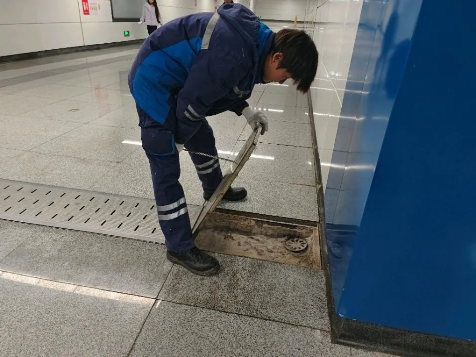 南昌地铁段工建专业对车站公共区装饰装修、横截沟盖板、卫生间门锁等重点区域及设备进行专项排查,保障旅客安全出行,并对车站设备区、轨行区设备设施进行排查保养,对渗漏水进行堵漏疏通,确保设备安全稳定。
