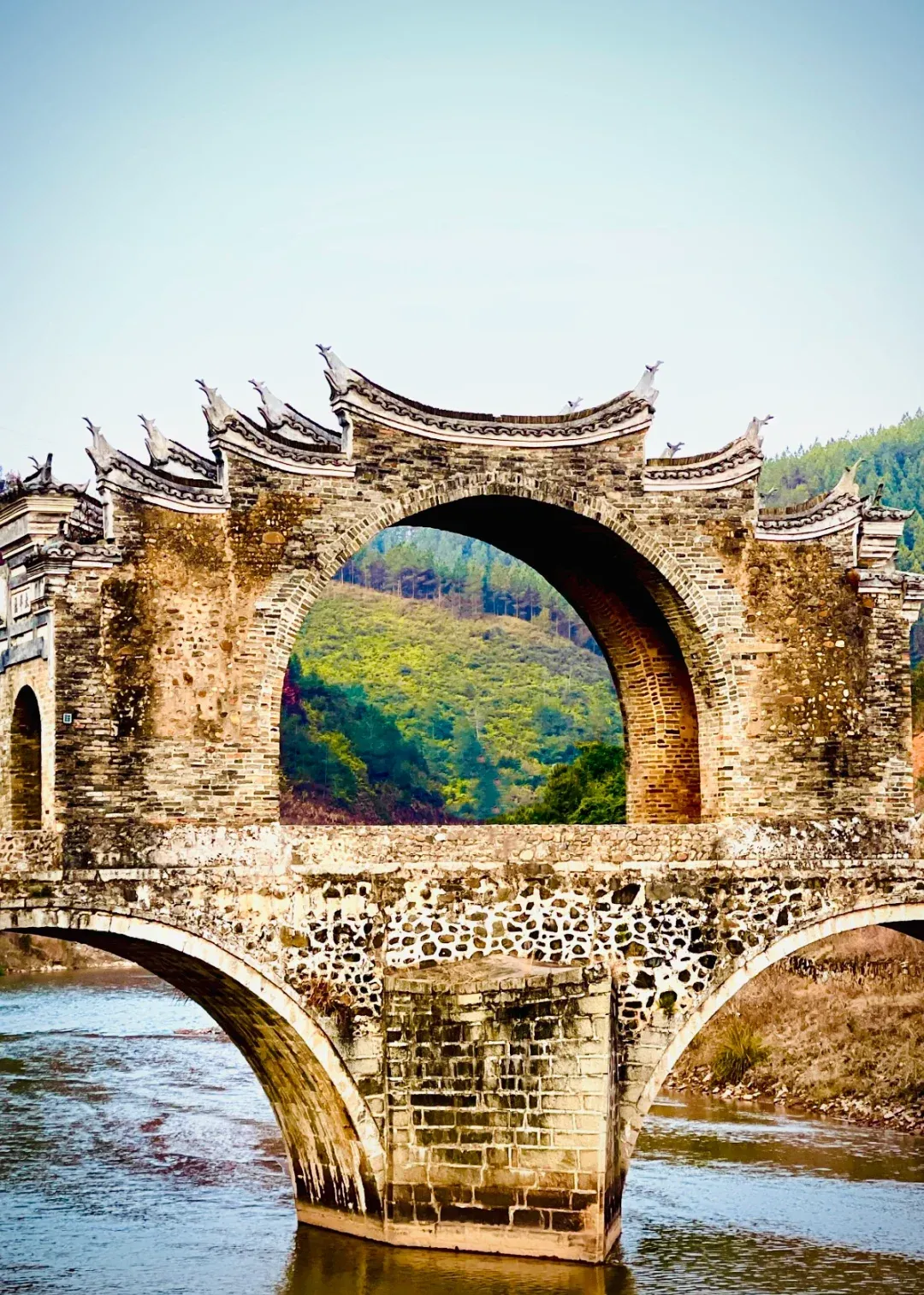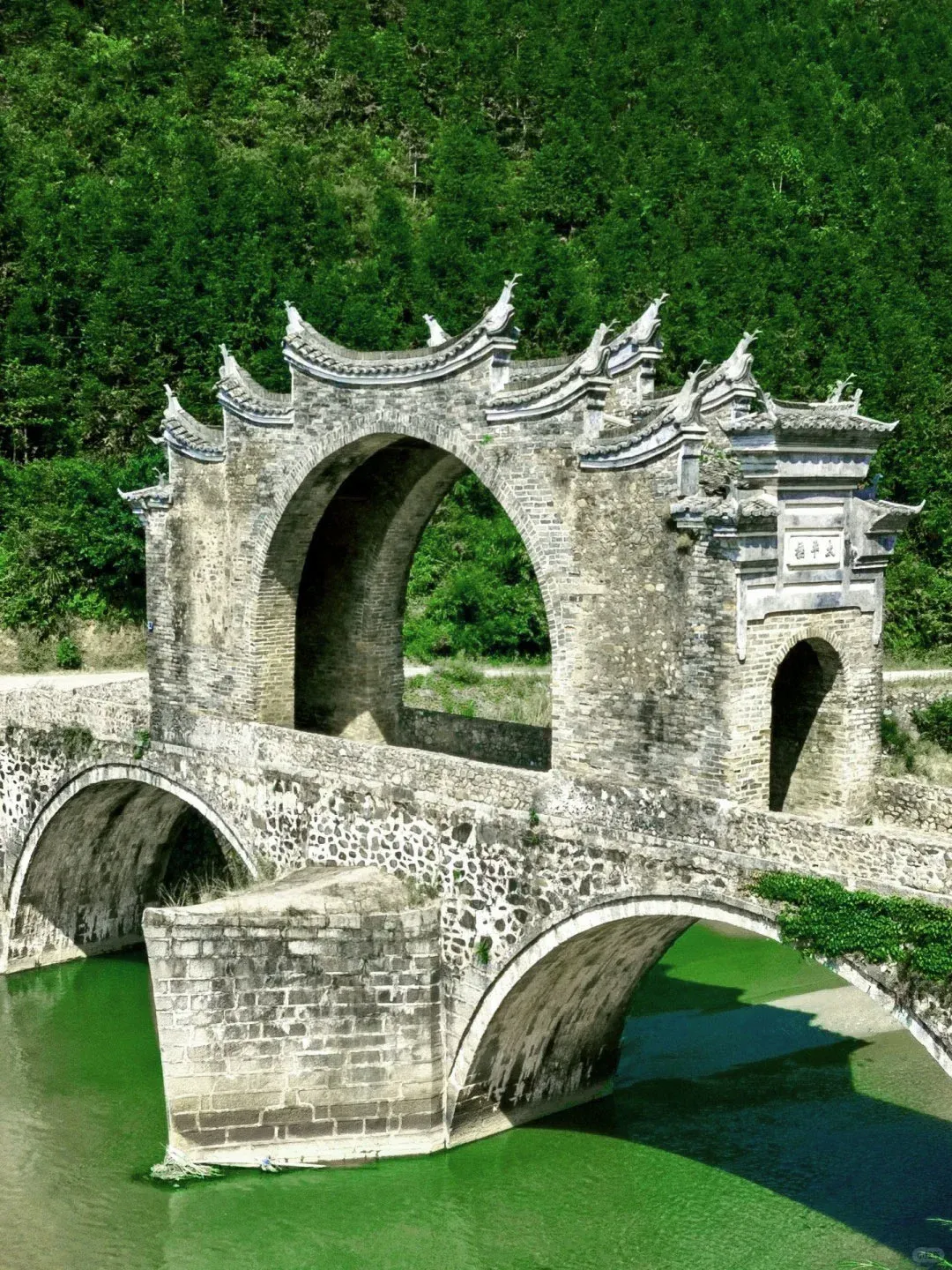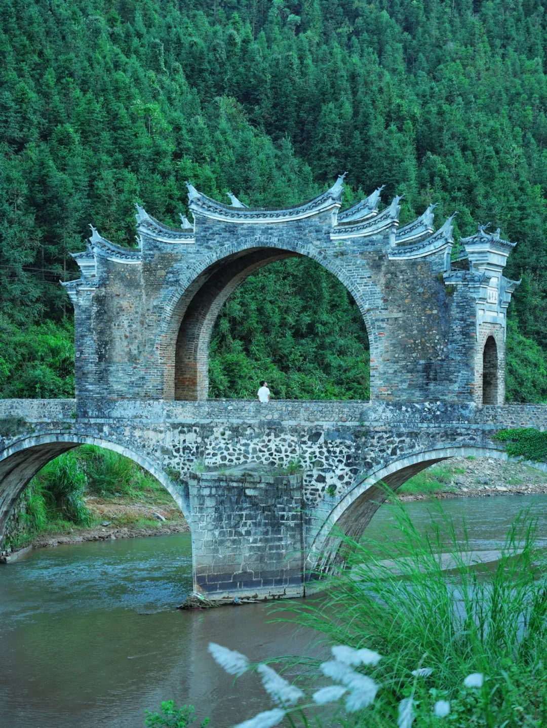 它是明代王阳明所建的一座风雨桥,品字形,几百年来屹立不倒。