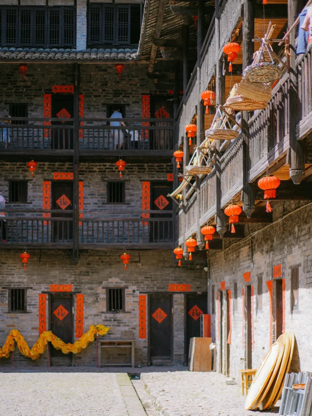每层有34个房间,各层有骑楼回环相通,一股浓厚的古早气息铺面而来。