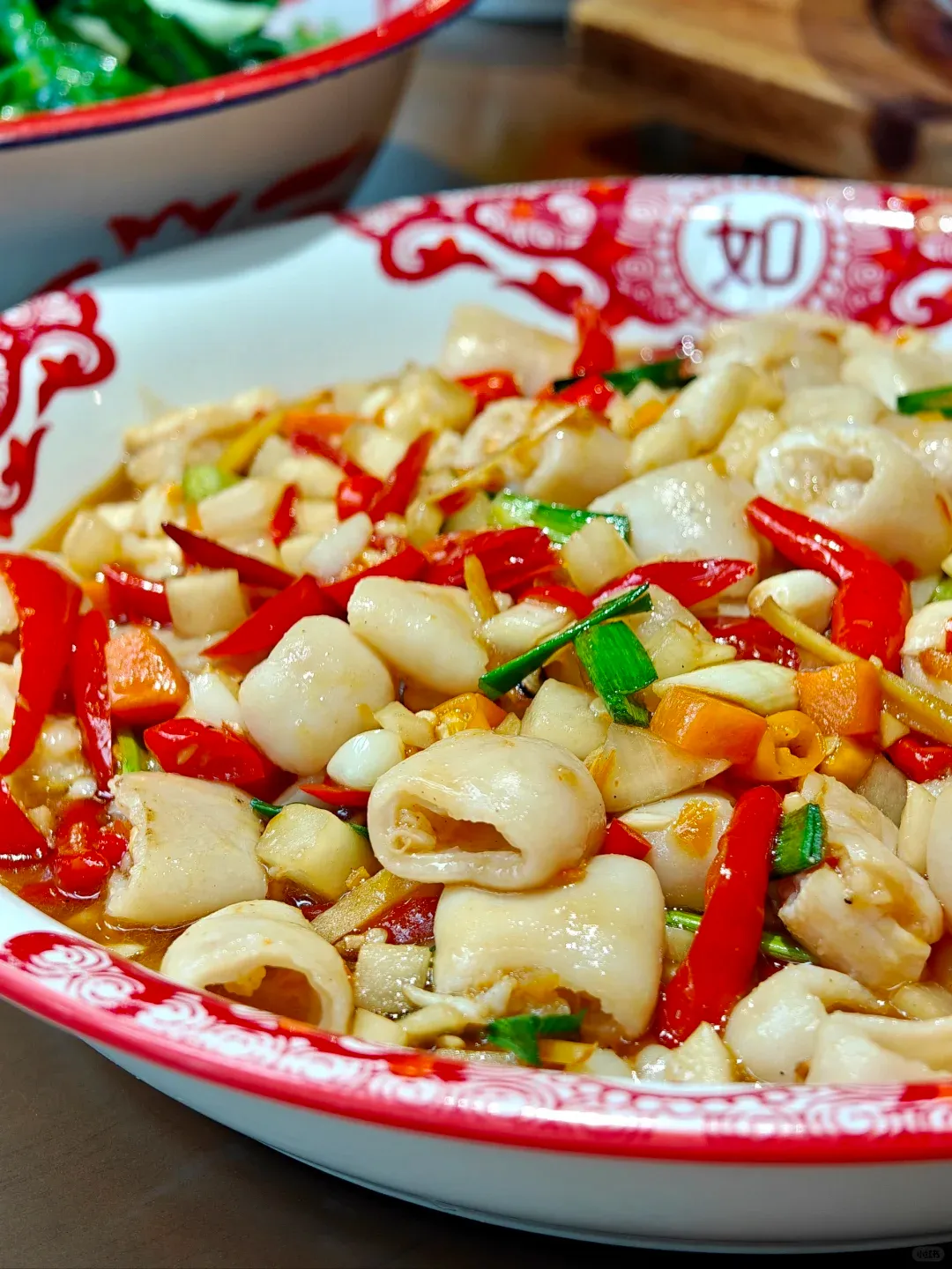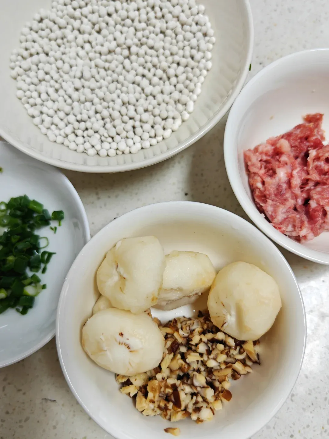 作为赣南客家菜十大名小吃之一,凤眼珍珠也被龙南人戏称为一颗一颗搓出来的美食。通常会搭配香菇、瘦肉片、荸荠等食材一起烹煮。看上去有点像是咸味的西米露,晶莹剔透。