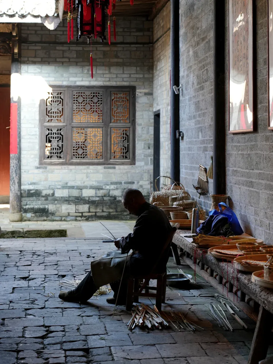 如今,这里还有一两户人在这里住。游客人来人往,老人们却依旧不疾不徐的编着竹子,生活依旧平淡幸福。