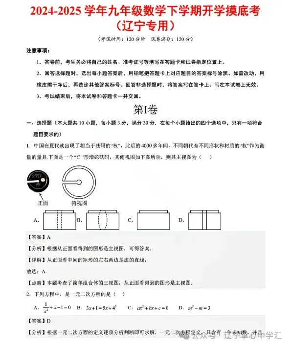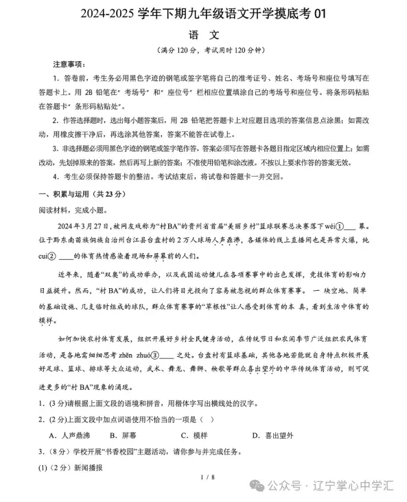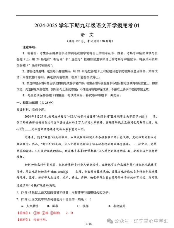 今日分享2025年3月沈阳南昌九年开学考部分试卷+答案,