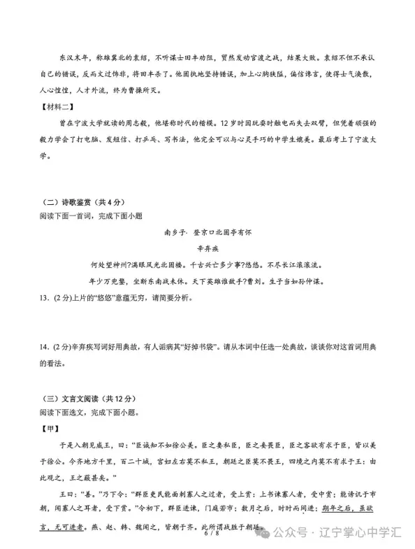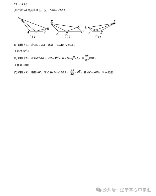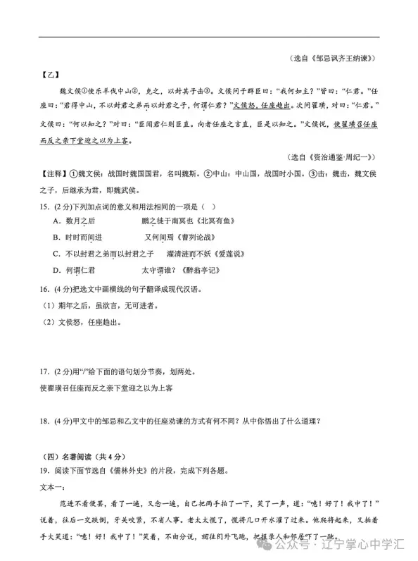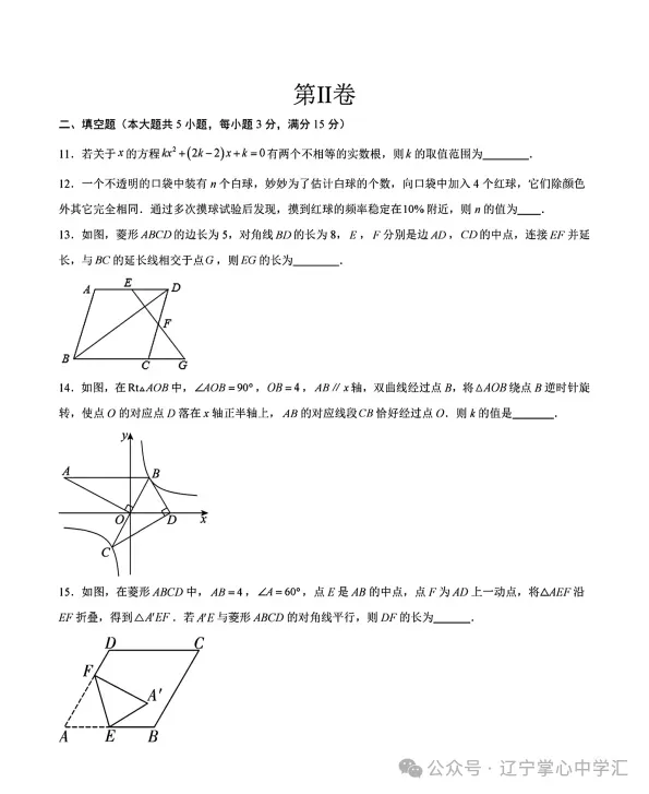 2025年3月沈阳南昌中学九下开学考部分试卷+答案