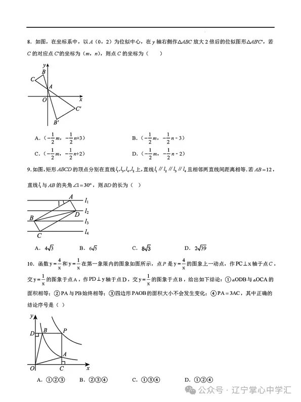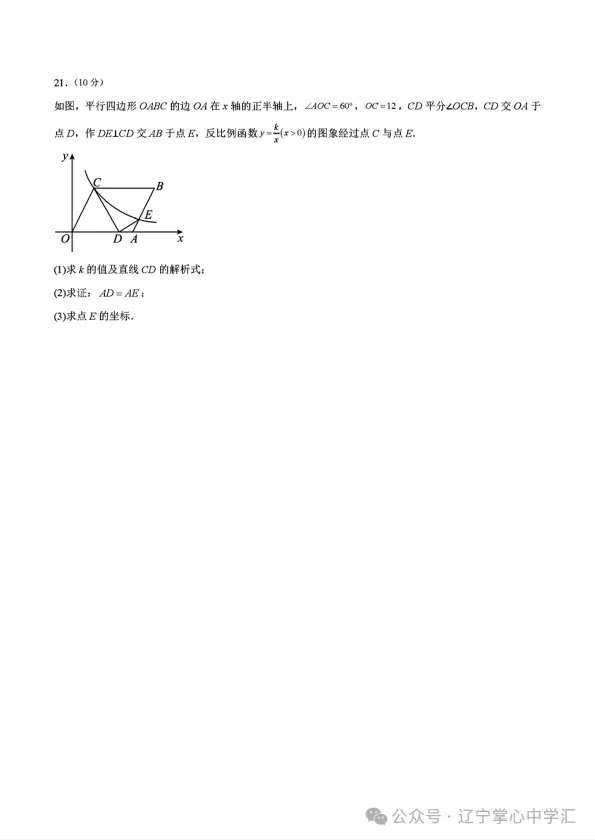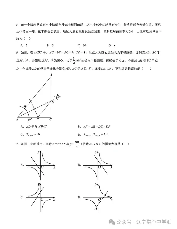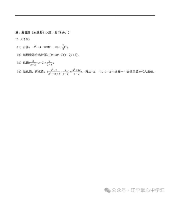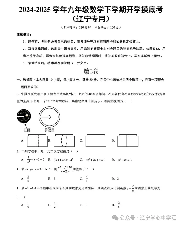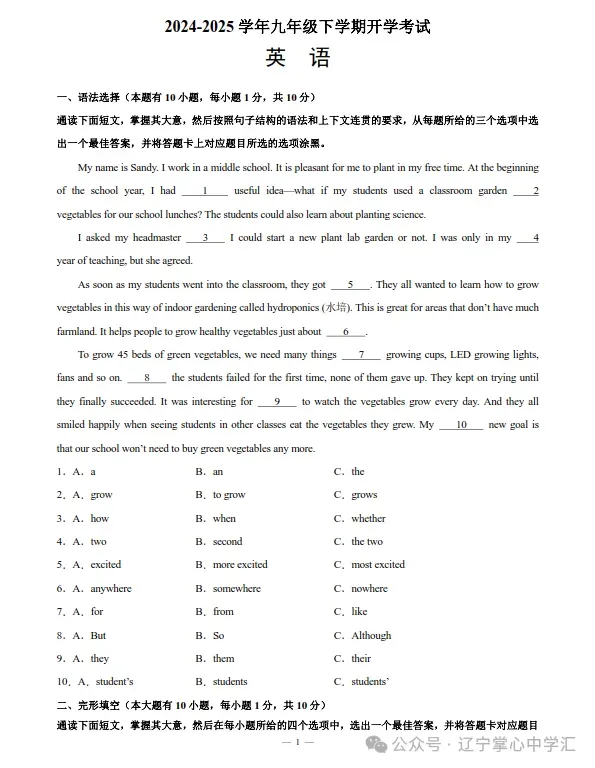 >2025年3月沈阳南昌中学九下开学考部分试卷+答案