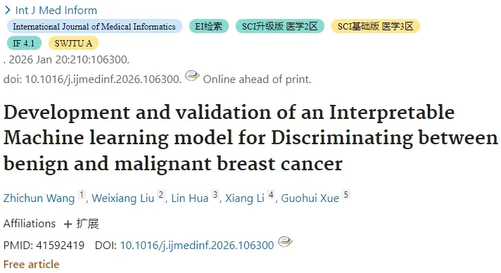 在乳腺癌已成为全球女性健康首要威胁的今天,早期鉴别肿瘤良恶性、避免不必要的创伤性活检,依然是临床实践亟待破解的关键难题。一项发表于《International Journal of Medical Informatics》的研究带来一个革命性的系统视角。本研究由九江市第一人民医院联合南昌大学第一附属医院开创性地采用“可解释机器学习”的系统性策略,旨在绘制一幅清晰的辅助决策导航图。