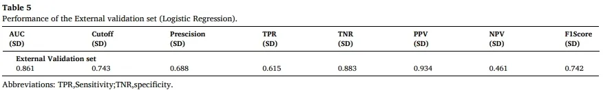 数据来源:本研究数据来源于一项在两个临床中心开展的回顾性诊断预测研究