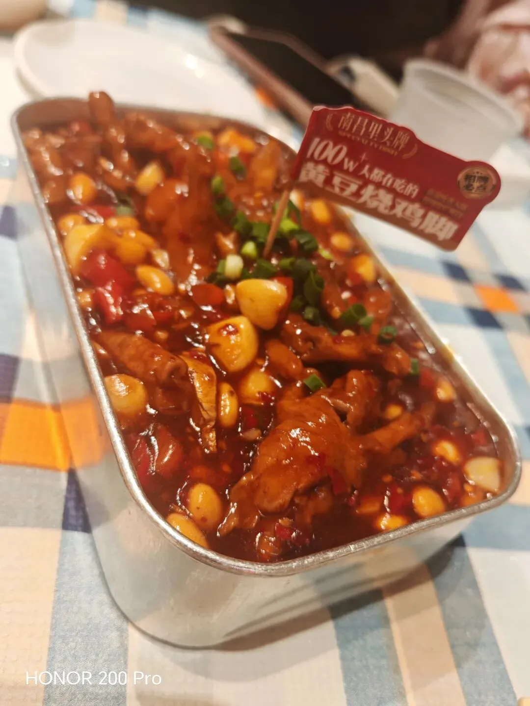 油浸鱼、黄豆鸡脚、肉饼汤、土豆丝,每一道都香到上头,