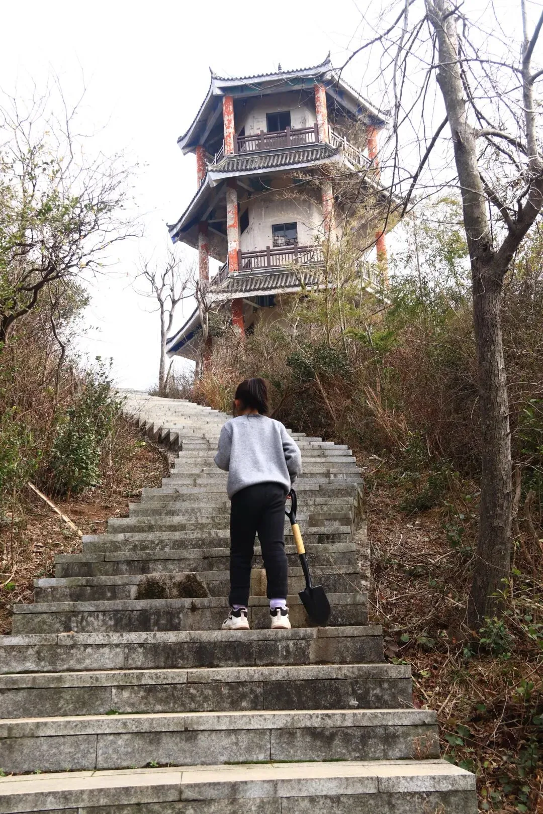 山顶除了这座塔和一座雕像,其他什么都没有,呆了一会我们就下山了,都说上山容易下山难,年轻的时候还没体会到,这年龄大了可是深有体会啊,才下到一半我的两条腿就开始发抖了。嫂子说越休息越抖,还不如一口气下了山再抖,哈哈。