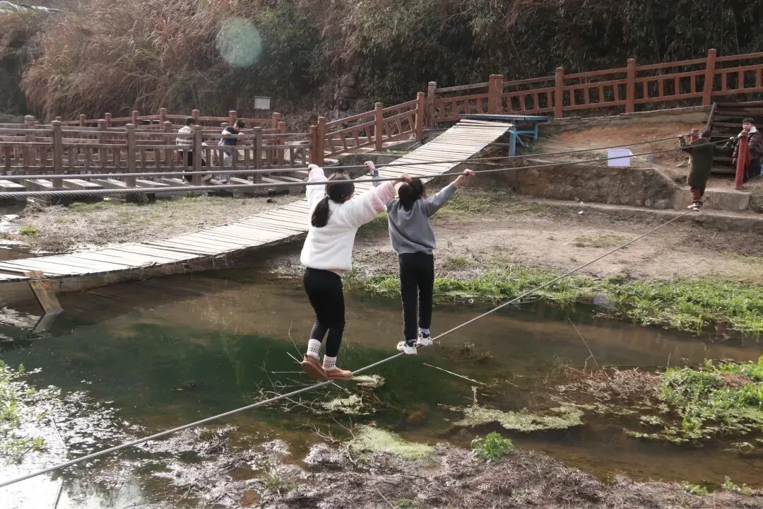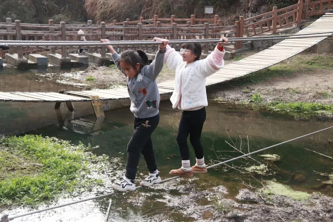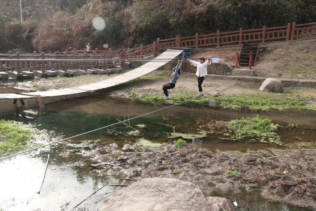 下了山孩子们嚷着要回刚刚的小水沟玩,我说带她们再转一圈,如果没有好玩的就去小河沟,结果,幸亏没直接去小河沟,不然就错过了这小木桥和索道了。
