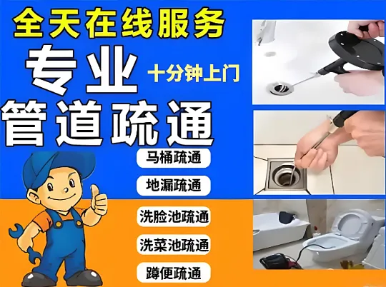 全天提供疏通下水道、管道疏通、马桶疏通等同城上门服务,师傅24小时接单,10分钟快速上门