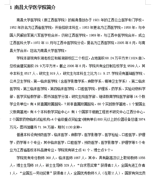 南昌大学医学院(原江西医学院)的前身是创办于1921年的江西公立医学专门学校。1952年改名为江西省医学院,开始招收本科生,1953年更名为江西医学院。1958年,与中国人民解放军第八军医学校合并,仍称江西医学院。1969年,与江西中医学院合并,成立江西医科大学。1972年11月与江西中医学院分设,复名为江西医学院。2005年8月,与南昌大学合并,冠名为南昌大学医学院。