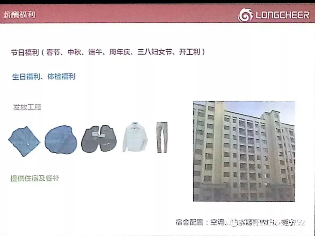 5、吃住福利:吃三餐入职就直接发厂牌刷卡吃饭(日限额15元/天,相当于450元/月)公司提供住宿电梯房(4-8人间,配有空调、洗衣机、独立卫生间、24小时热水、Wifi免费上网,须分摊水电)。住宿无需缴任何押金!