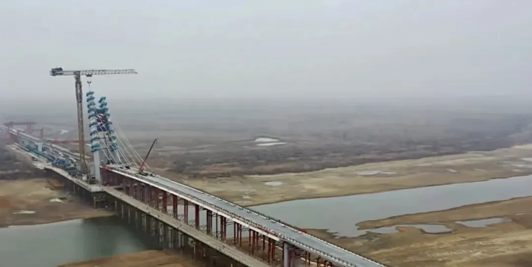 主桥方面,主梁已全部架设完成,主塔混凝土段施工顺利收官,39个节段的钢塔正逐步完成吊装与焊接。