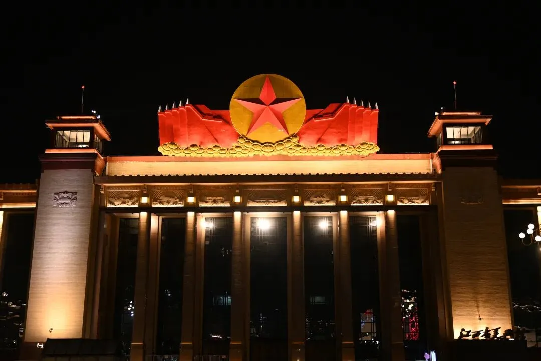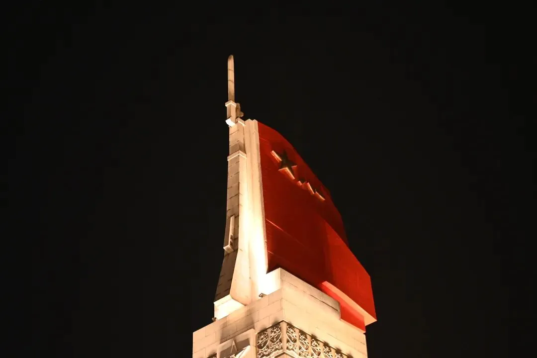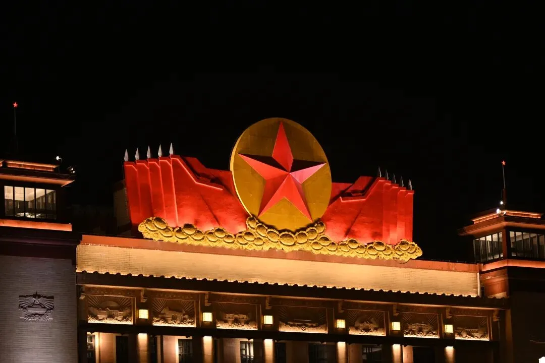 江西革命烈士纪念堂:堂顶的金色五角星在黑夜里格外醒目,下方的红色绸带造型,如同一团永不熄灭的火焰。堂前的广场上,游人或驻足沉思,或拍照留念,在这份庄严中,“八一”精神被代代相传。