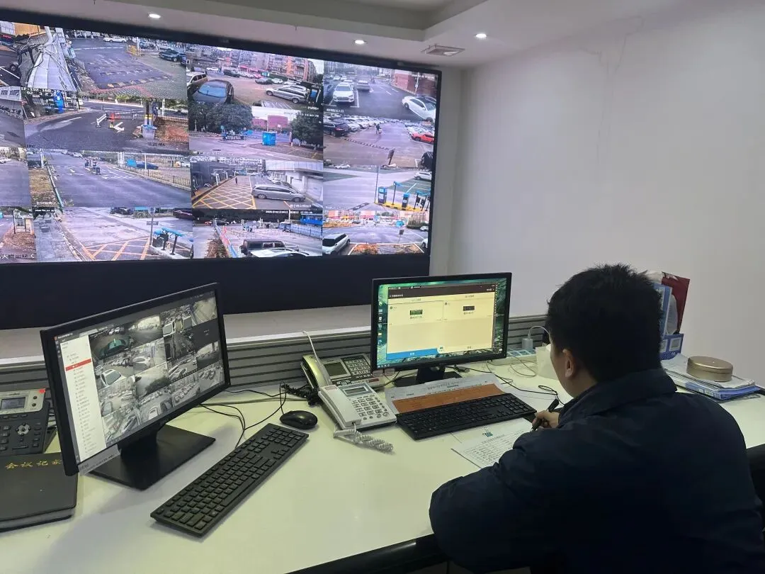 驻车公司中央控制室值班员一直紧盯各大停车场的监控屏幕不放松,针对高峰时段提前协调各停车场空余车位数,及时处理道闸故障、收费系统异常等问题,为节日期间停车秩序平稳保驾护航。