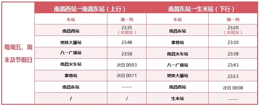 为方便旅客返程,2月23日(正月初七),南昌地铁全线网各线路将执行双休/假日列车运行图,延长运营服务时间30分钟。您可通过“南昌地铁”微信公众号 →“服务”→“首末时刻”,查询各线路详细末班车时间,提前规划行程。