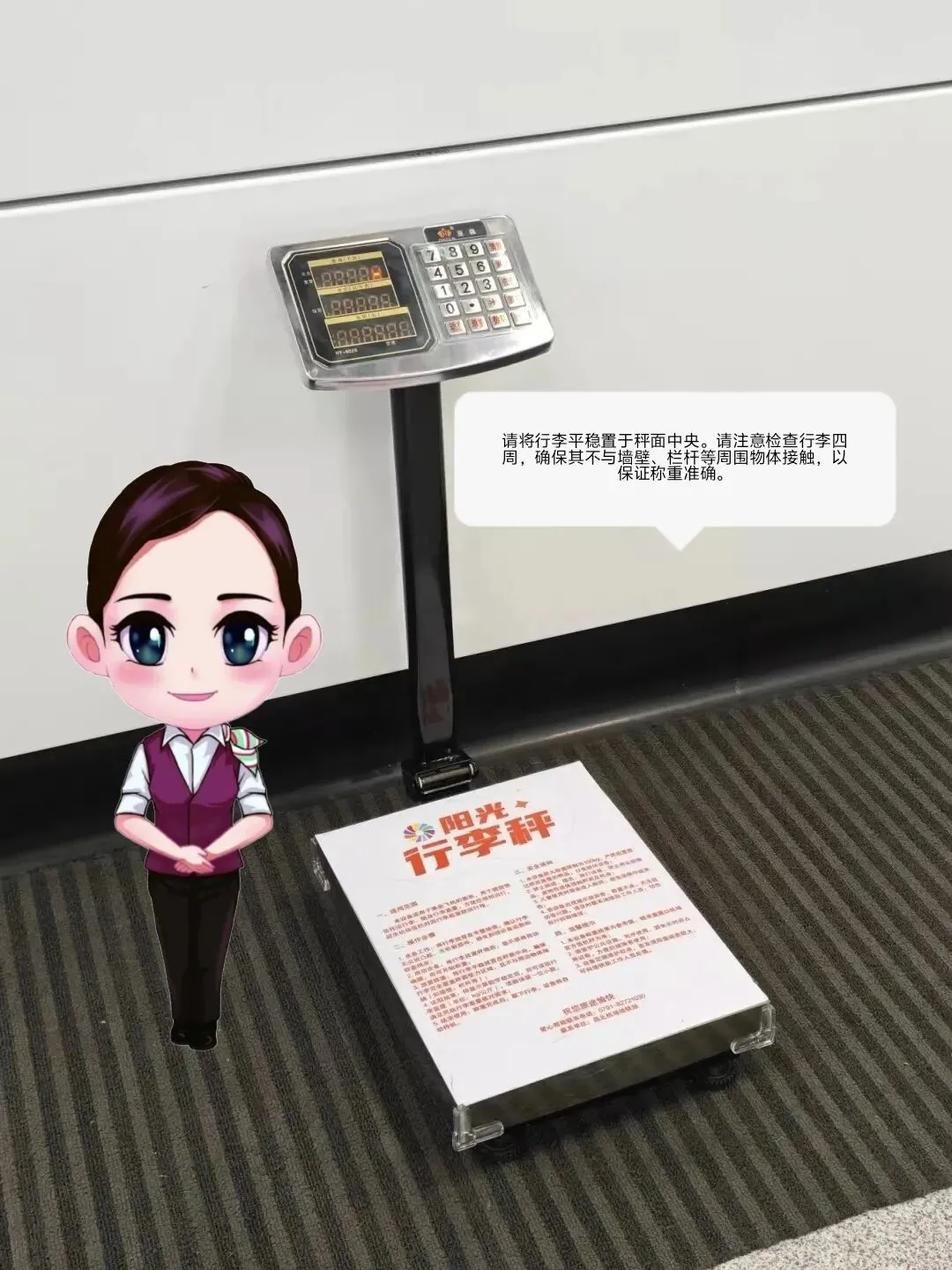 地铁1号线昌北机场站厅设有免费称重设备,出行前可预估行李重量。