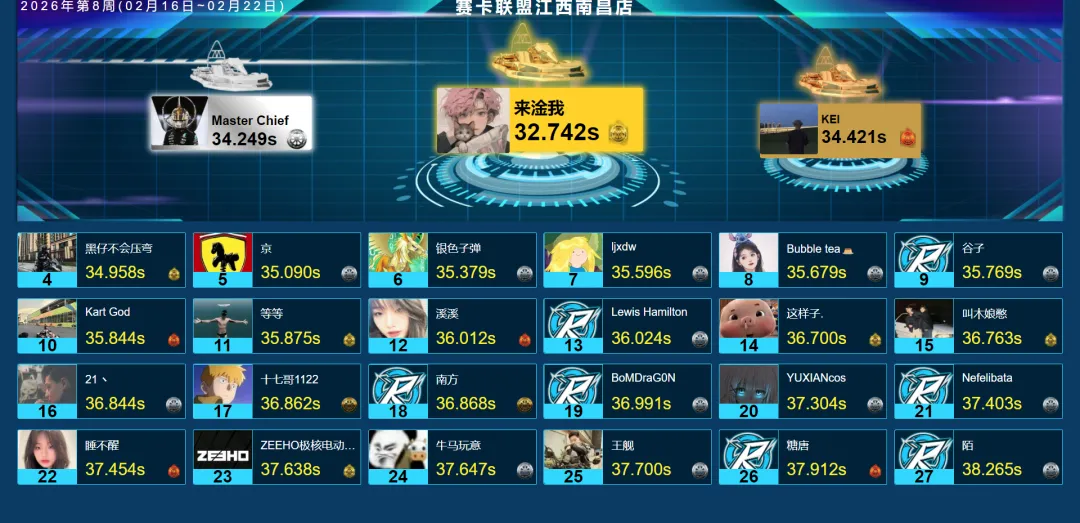 在赛卡联盟的激烈竞争中,每一天都有新的速度传奇诞生!欢迎来到上周最快圈速榜单,这里汇集了所有顶尖车手的精湛技艺和无尽速度激情。