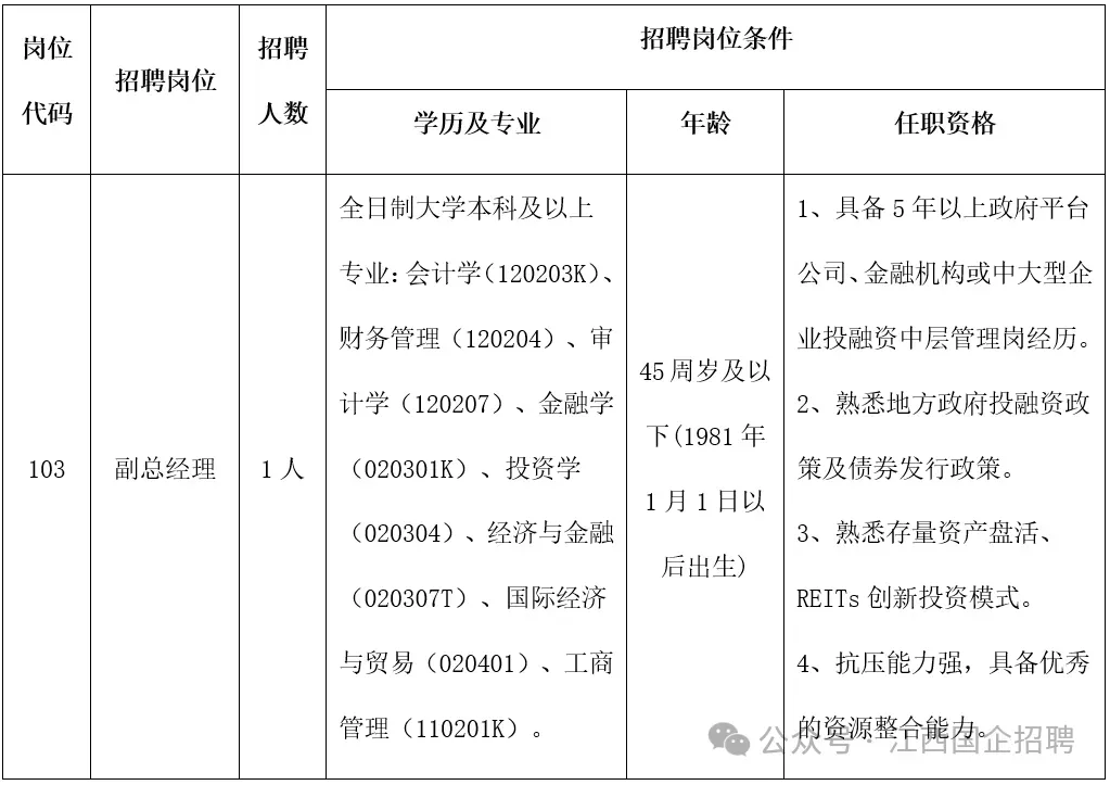 具有招聘岗位所需要的任职资格、职业资格、技能要求以及其他条件。具体详见《吉安市新庐陵投资发展有限公司及下属子公司2026年第一批面向社会公开招聘岗位信息表》(附件1)。