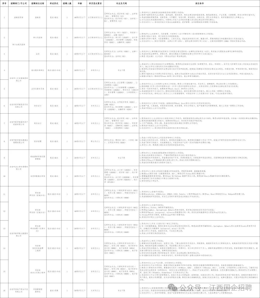 1.吉安市新庐陵投资发展有限公司及下属子公司2026年第一批面向社会公开招聘岗位信息表