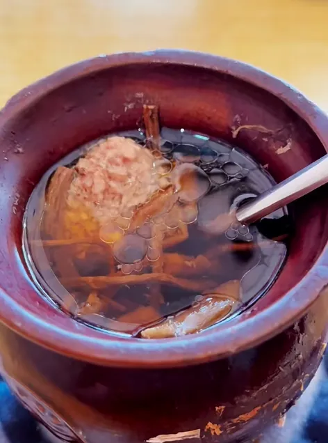 中午得来一盅瓦罐汤。土鸡也好,筒骨也罢,汤色清亮,但味道极厚。那是时间和火候熬出来的功夫,一碗下肚,胃里暖洋洋的,人也就舒坦了。