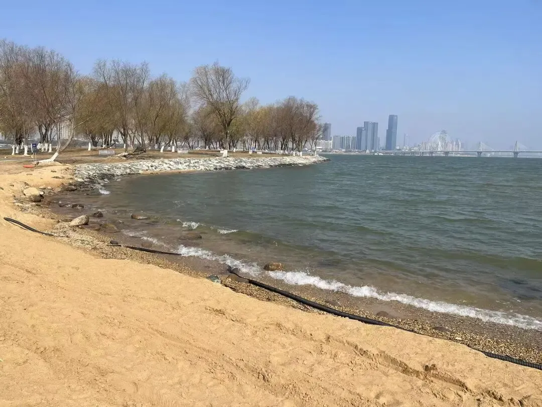 那么冷的天,柴鸣还是要玩水。整个脚都湿了,柴鸣觉得不冷就行。