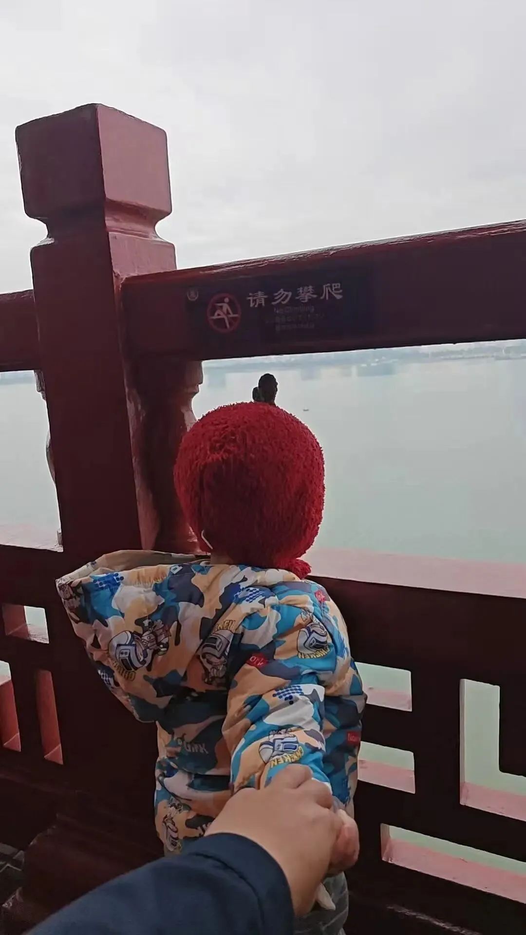 逛,爸爸带鸣宝去滕王阁登阁。爸爸说,挺累的,因为人很多,没法让娃慢慢自己走楼梯,只能抱。