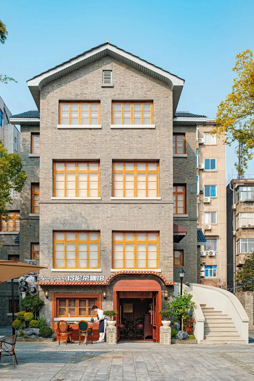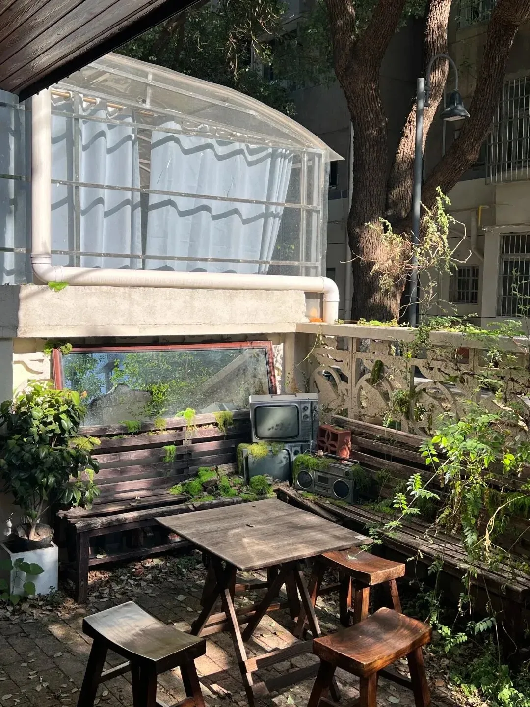 省府大院里有小院的咖啡馆推开木门院子里的木长凳造型古朴转角搭着小景