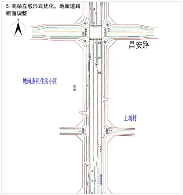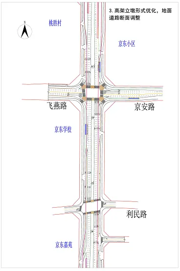 2、高架立墩形式优化,地面道路断面调整。