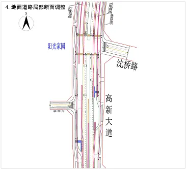 6、高架立墩形式优化,地面道路断面调整。广州路南侧及朱桥东路北侧各一组匝道外移。