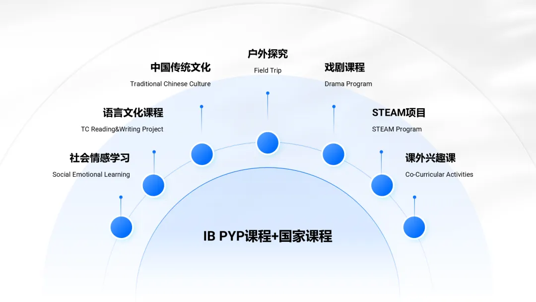 Basic courses: Chinese, Mathematics, Science (fulfilling the requirements of the national compulsory education curriculum with the IB framework and philosophy).