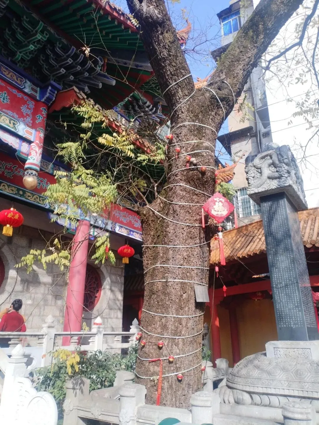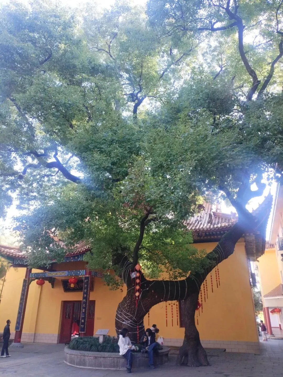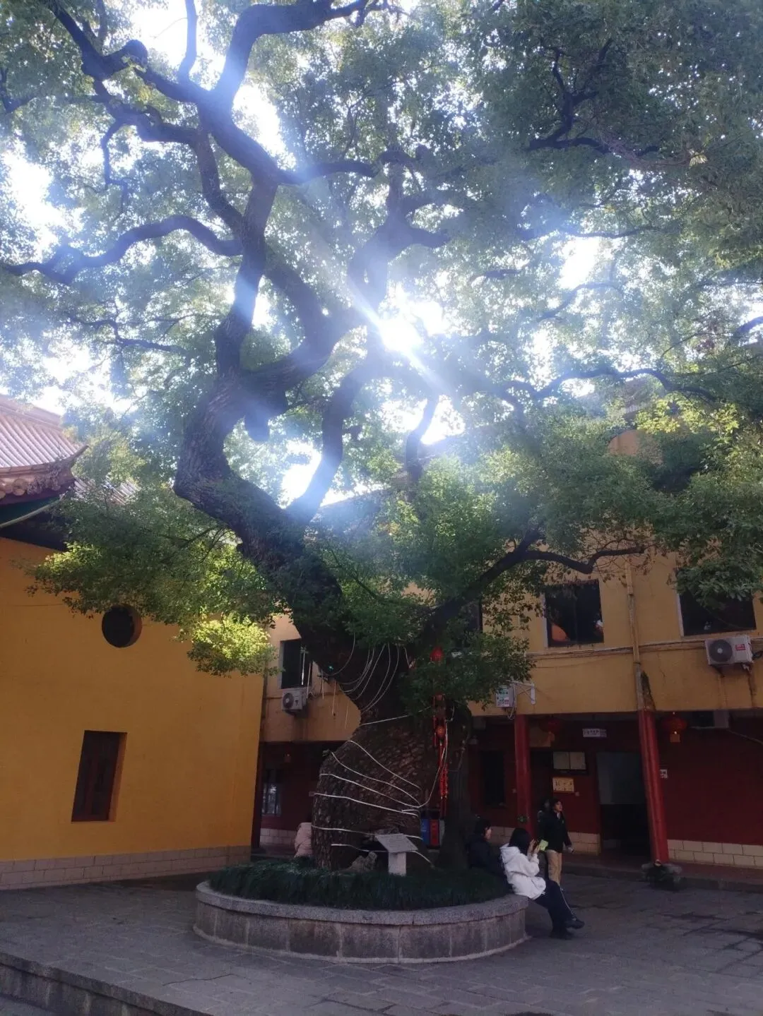过佑民寺山门,在天王殿的后面,有一棵古樟树。
