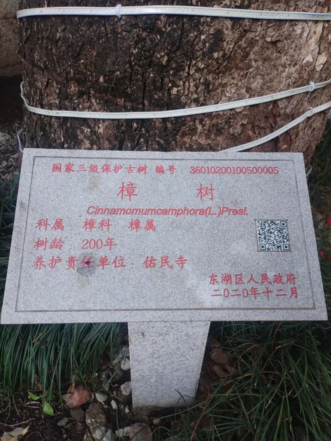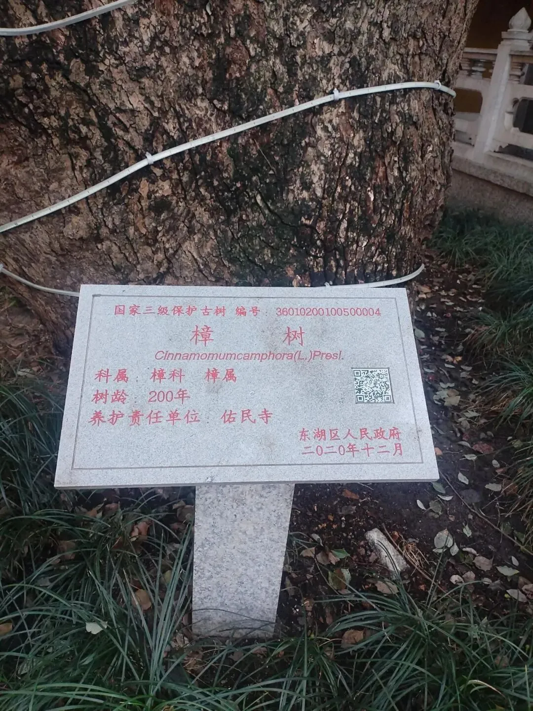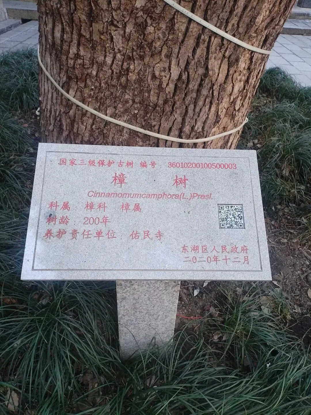 过佑民寺山门,在天王殿的后面,有一棵古樟树。