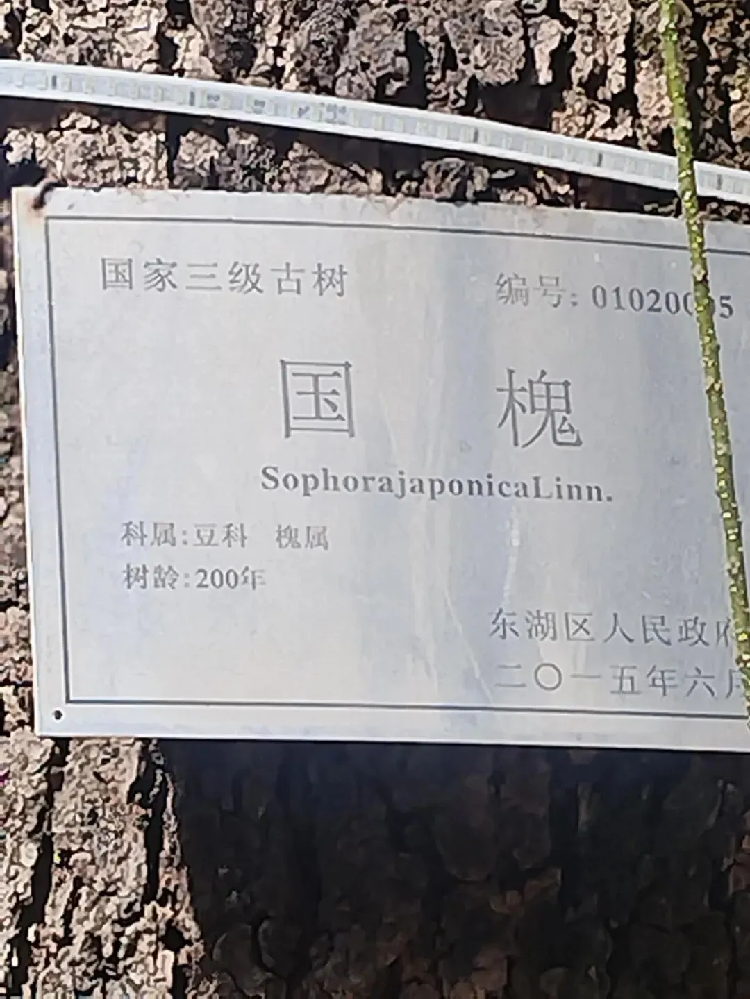 在铜佛殿右前方,有一棵国槐树。