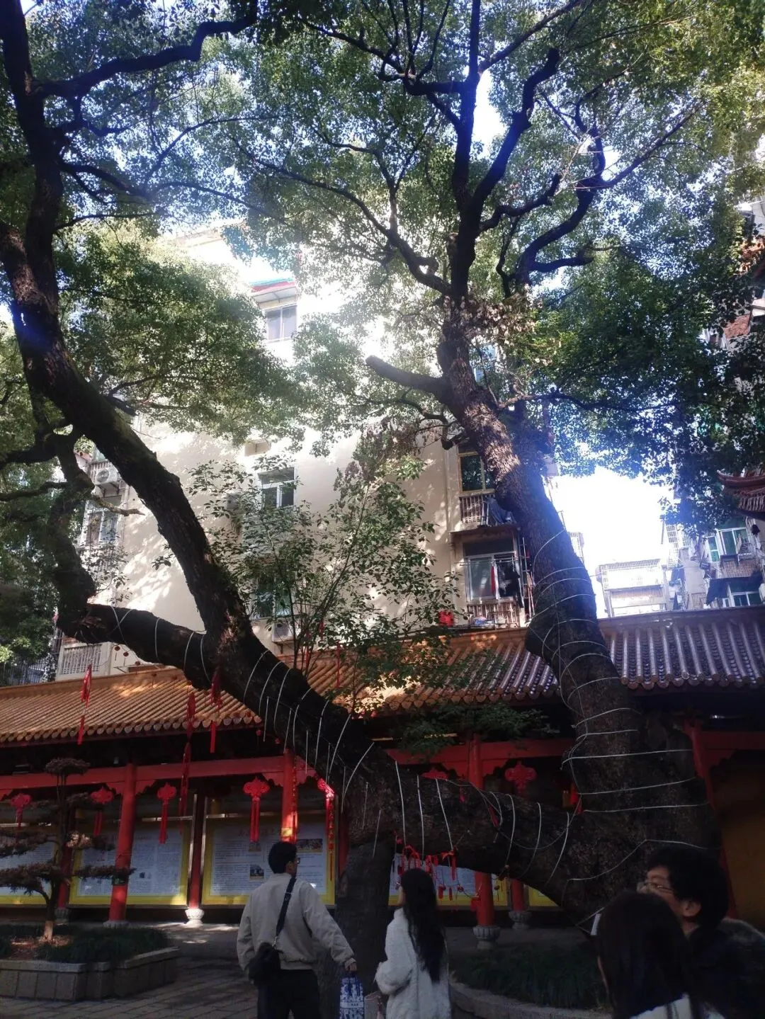 南昌佑民寺内四樟一槐,让我静心——到佑民寺的参观的朋友,不仅要拜佛,也可赏古树.