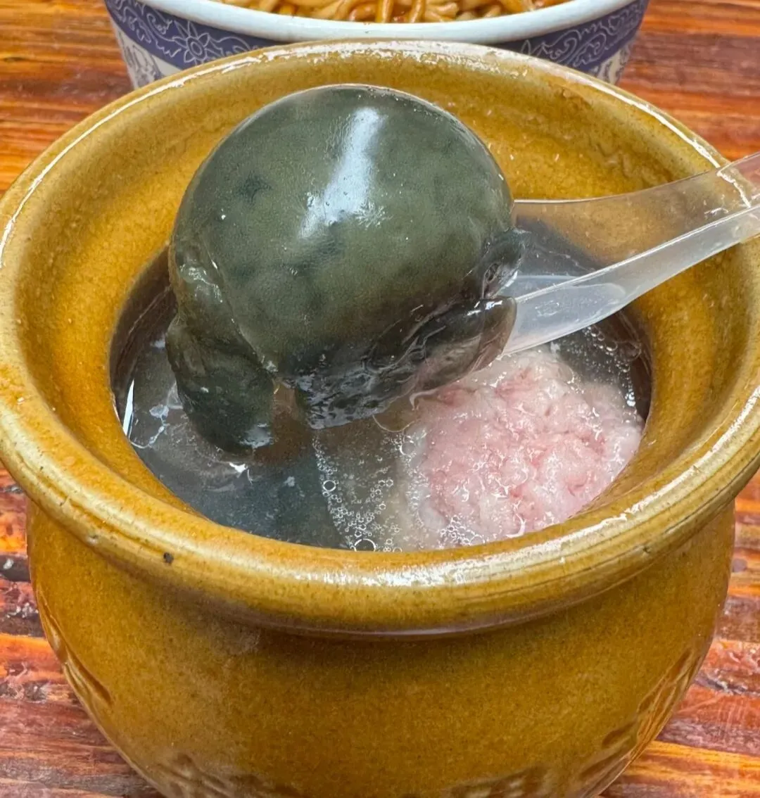 南昌人的一天,是被“嗦粉”声唤醒的。不同于桂林米粉的爽滑或湖南米粉的柔韧,南昌拌粉用的是晚米制成,口感偏硬,带着独特的米香。灵魂在于那一勺店家秘制的辣椒油,再配上萝卜干、花生米、葱花,用筷子大力拌匀。每一根米粉都裹满了酱汁,入口香辣,越吃越上头。标配是一碗瓦罐汤,皮蛋肉饼汤是首选,鲜美的汤汁刚好中和了拌粉的辣度,一口粉一口汤,这才是南昌早晨的正确打开方式。