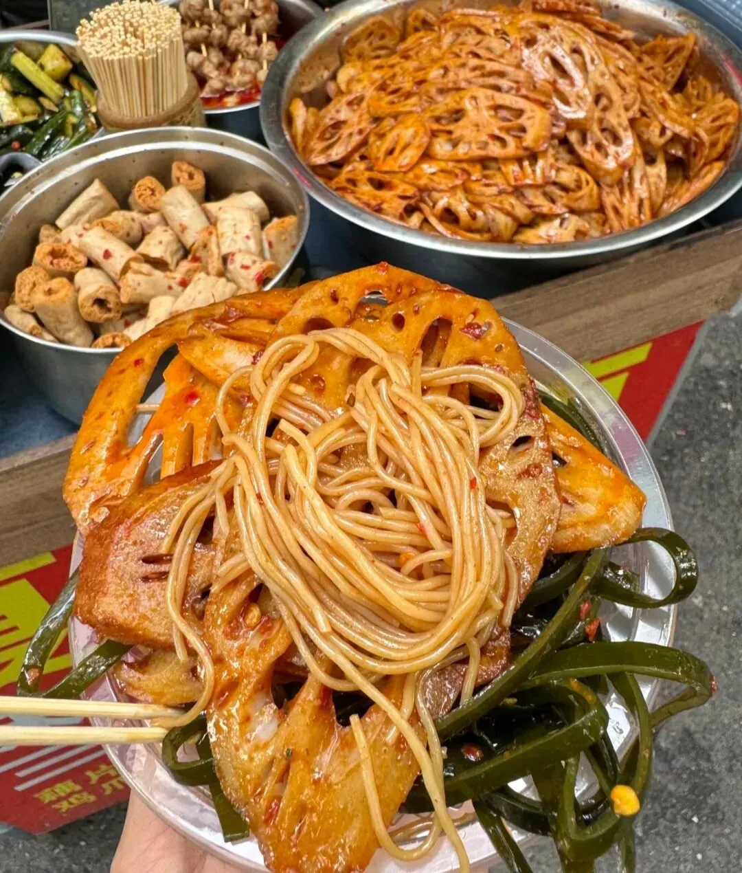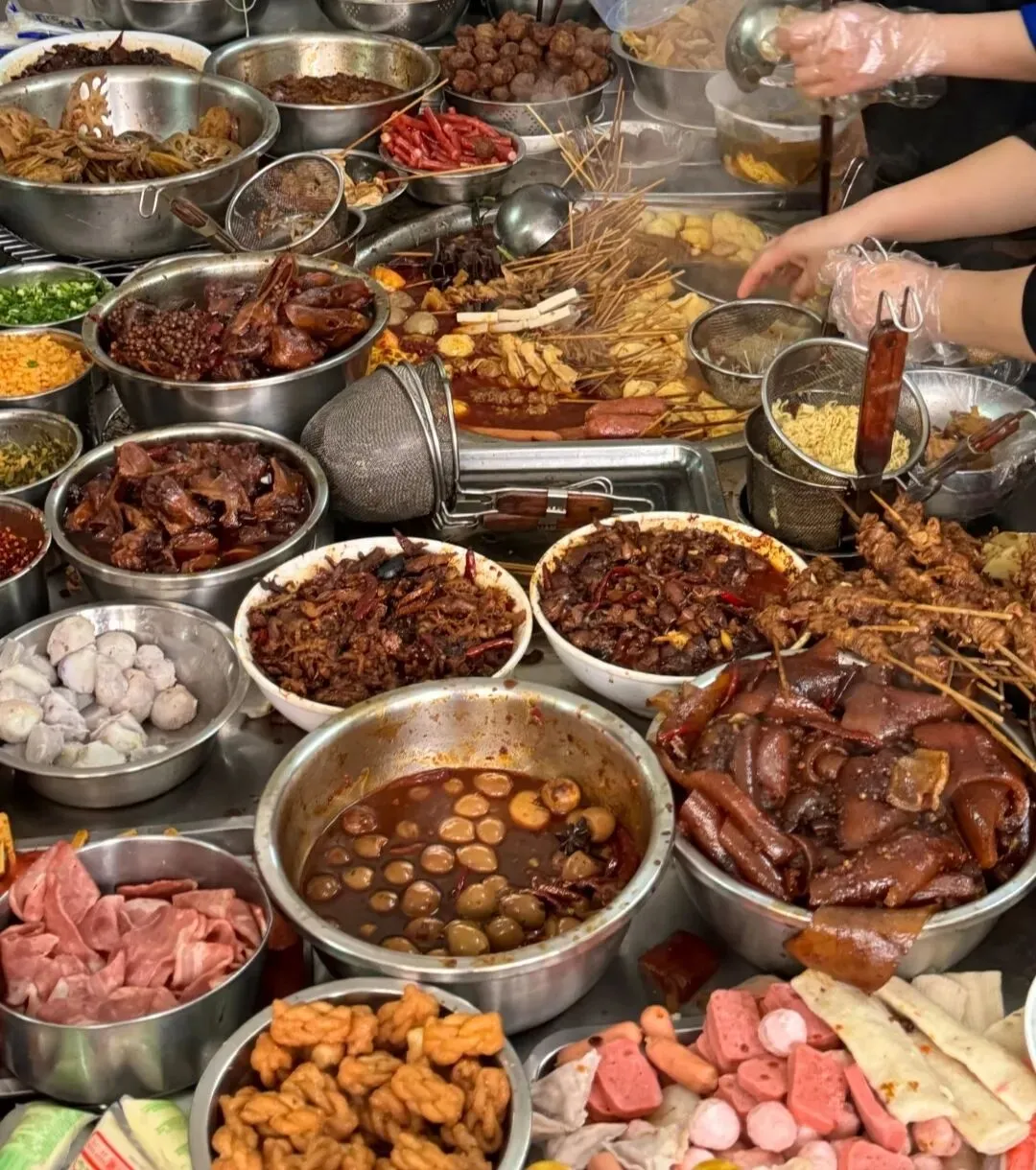 当夜幕降临,南昌的夜生活才刚刚开始。不同于烧烤,南昌的油炸和水煮是另一种风味。万物皆可炸:脚板、八宝、豆卷、藕片,刷上秘制酱料,撒上孜然辣椒,外酥里嫩,满口留香。水煮则更像是一场食材的盛宴,在巨大的锅里咕嘟咕嘟翻滚,心肺、肠结、豆泡、萝卜,想吃什么自己选。坐在路边的小板凳上,吹着晚风,喝着南昌八度,这才是南昌人最惬意的时刻。