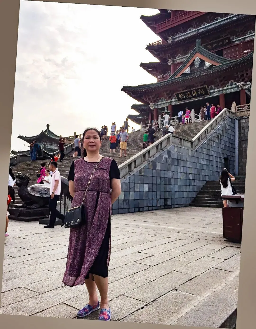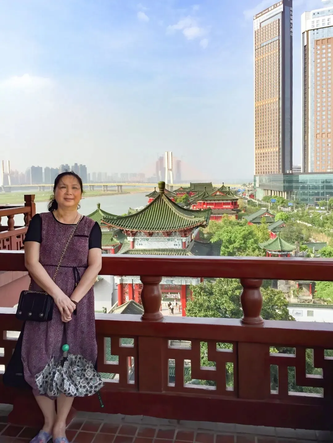 】2017年我已经不上班了。时间自由了之后,便带着老伴去旅游。从哪个时候起,旅游逐渐上瘾。这是在南昌,我在老连队胡班长的陪同下游览南昌著名景点滕王阁。可惜那些直接拍摄滕王阁的照片都找不到了,只有这几张老伴的照片背景可以反映景点的一角。