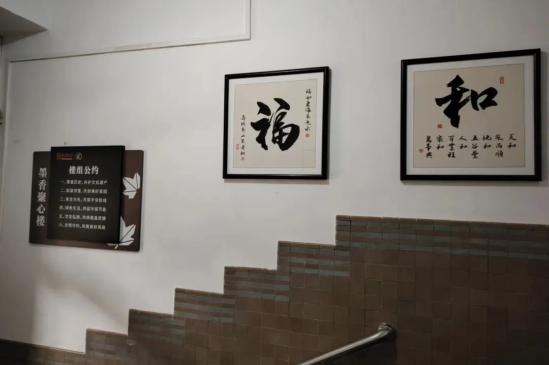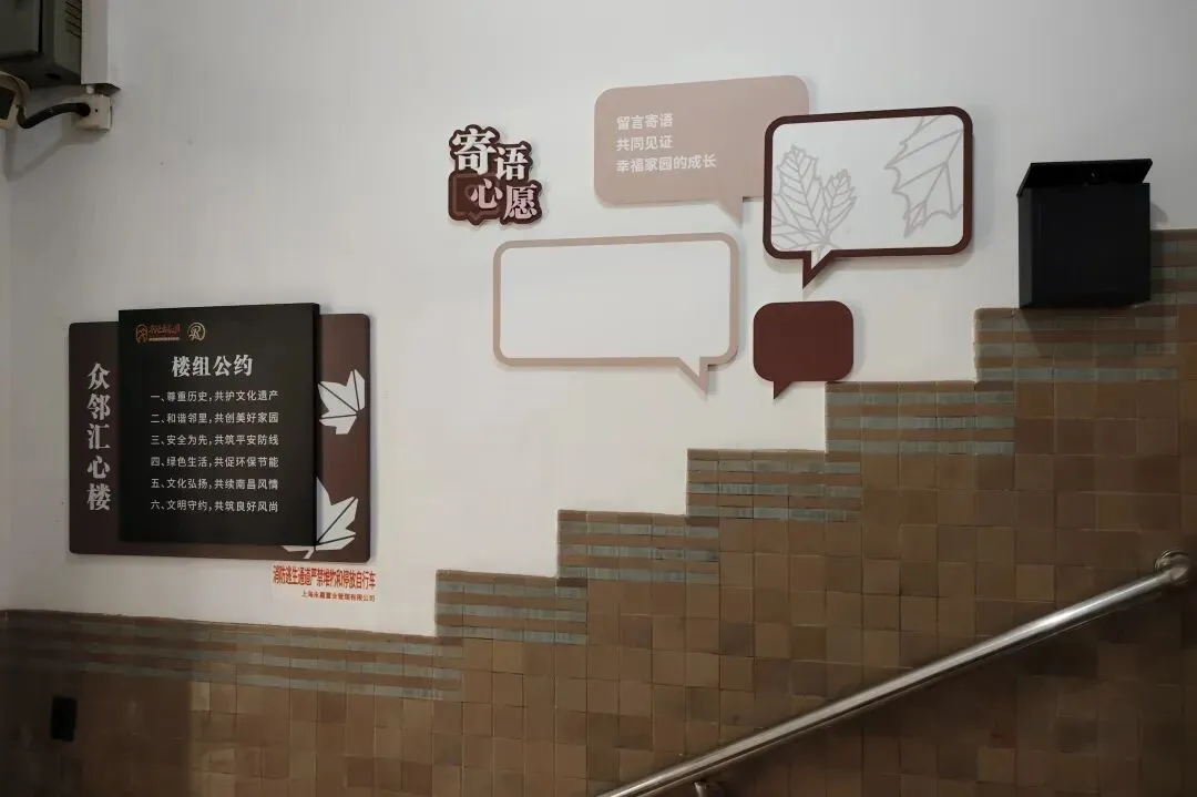 岁月变迁,大楼历史风貌渐逝。为进一步提升居民对大楼历史的了解,“岁月留心楼零距离楼组”通过民主征询,决定建立历史文化展示点。通过向专业部门与居民征集相关资料,制作了详尽的历史简介展示板,悬挂于大楼底部,方便居民随时驻足观赏,激发了共同守护这份记忆的责任感与使命感。
