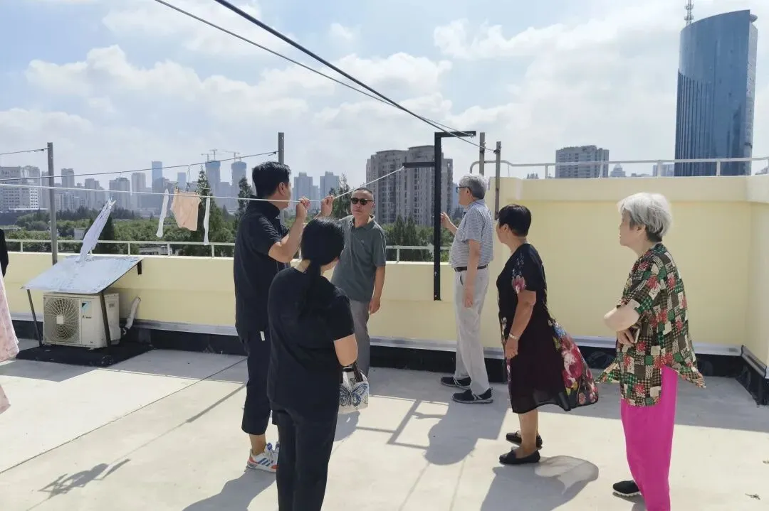 大楼里公共空间有限,部分居民在天台堆放杂物、私自种植绿植与蔬菜,不仅影响了大楼的整体美观,更导致了天台漏水等问题的频发。南昌居民区党总支积极关注大楼环境。通过发动“岁月留心楼零距离楼组”的自治力量,共同清理天台杂物,并增设绿植与宣传面板,使大楼的整体环境焕发出新的生机与活力。