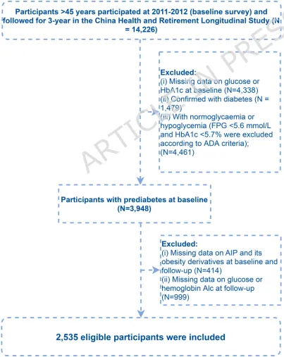 •数据:中国健康与养老追踪调查(CHARLS)2011-2015年数据;2535例糖尿病前期人群随访数据。
